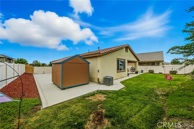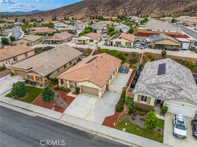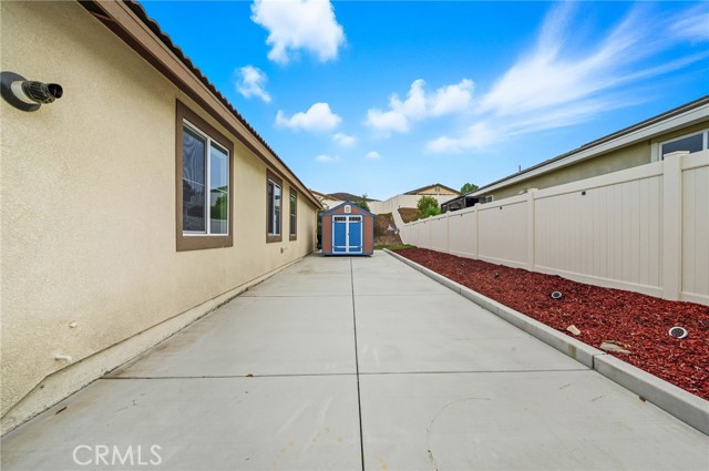Experience the charm of Menifee, where comfort and everyday living come together seamlessly in this beautifully upgraded home. The heart of the home is the kitchen, featuring quartz countertops, a large island, upgraded cabinetry, and stainless steel appliances—perfect for preparing meals, hosting gatherings, or simply enjoying casual time with family and friends. The spacious living area is filled with natural light and comes with a charming fireplace—creating an inviting atmosphere, while thoughtful details throughout add both style and functionality. Step outside to a private backyard with a covered patio, offering the perfect space to relax after a long day or entertain guests under the stars. This home also includes a paid-for water softener system, newly installed garage storage shelves and a shed that stays with the property, adding even more convenience. With RV parking, no HOA, and a community that shows true pride of ownership, you’ll enjoy both freedom and peace of mind. Energy-efficient solar panels keep utility costs low, and the location is unbeatable—close to shopping, dining, top-rated schools, parks, hiking trails, and quick access to I-215 and I-15. This home is the perfect blend of style, practicality, and the relaxed Menifee lifestyle you’ve been searching for.
