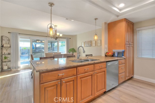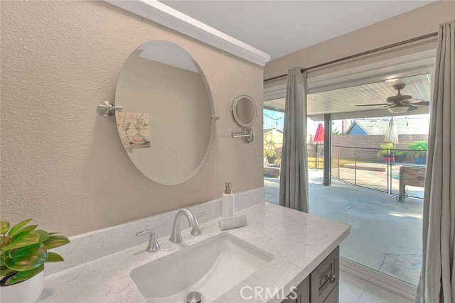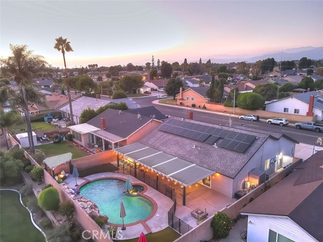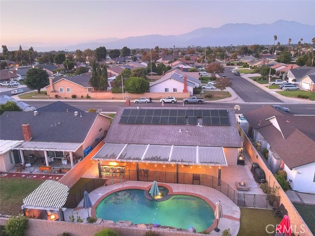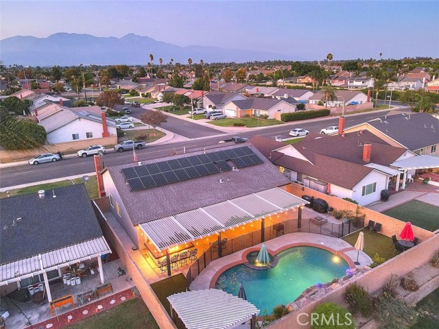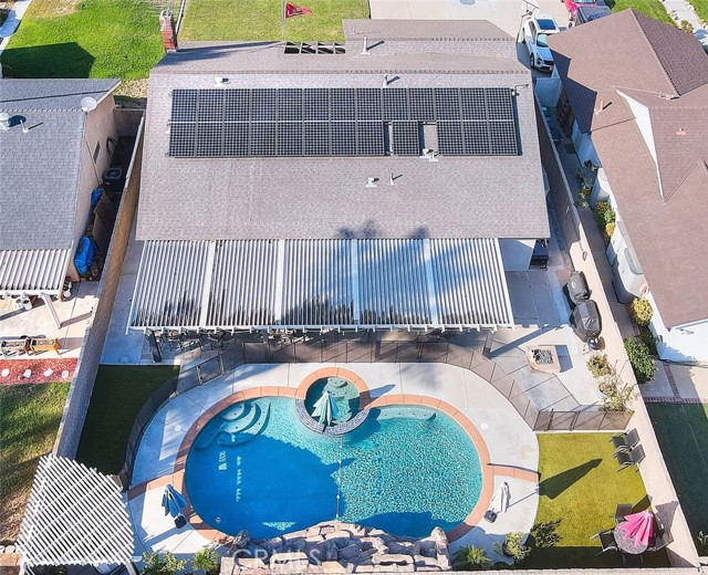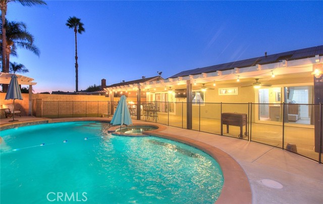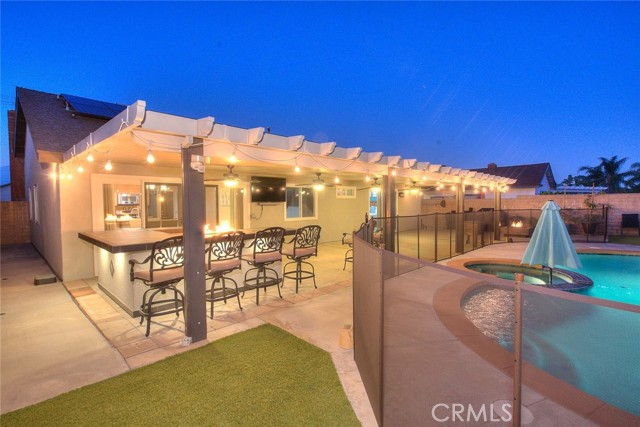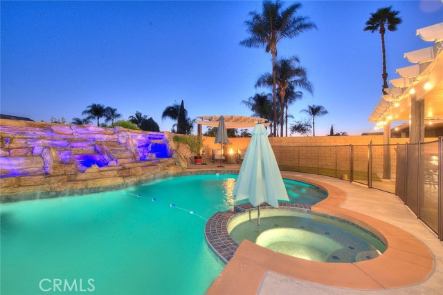Step outside to your personal paradise! This enchanting backyard features a luxurious built-in gas fire pit, perfect for cozy evenings under the stars. Gather around the stylish island with barstools, where the warmth of the fire pit creates an inviting atmosphere for friends and family. Dive into the sparkling heated pool, complete with a serene waterfall that glows with vibrant LED lights, allowing you to customize the ambiance to suit your mood. Picture yourself relaxing by the pool on sun-kissed days or hosting unforgettable barbecues beneath the charming patio cover. This outdoor oasis is not just a space—it's a lifestyle!