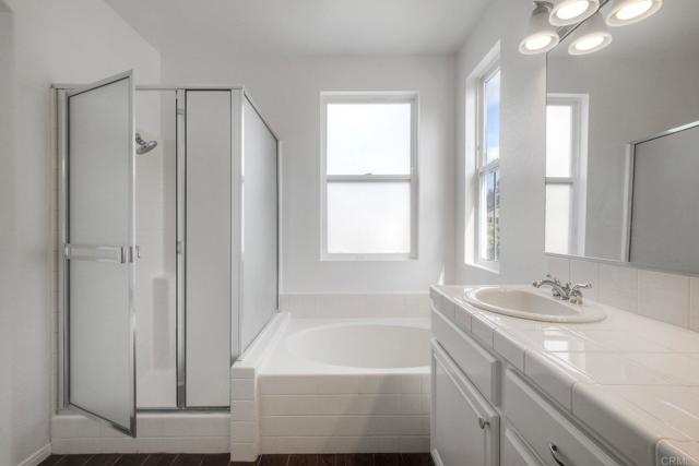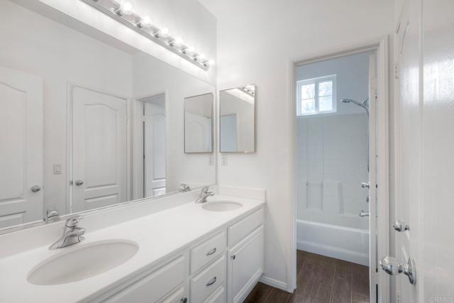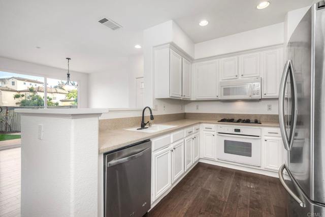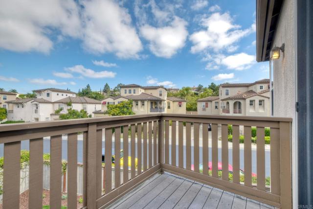 Welcome to the exclusive gated community of Portico at Rancho Carrillo! This beautiful corner-unit condo offers the largest floor plan in Portico’s triplex collection and showcases fresh paint, new carpet, and an open layout perfect for entertaining. Features include a cozy family room fireplace, upstairs laundry, and a large primary suite with walk-in closet, private balcony, and en suite bath with dual sinks, soaking tub, and separate shower. Enjoy a private backyard with patio and low-maintenance turf, plus a two-car garage with new epoxy flooring and a 240-volt outlet for electric car charging. Ideally situated with no neighbors directly behind and just steps from the community pool. Rancho Carrillo offers resort-style amenities including a swim center, walking trails, and proximity to award-winning Carrillo Elementary School.