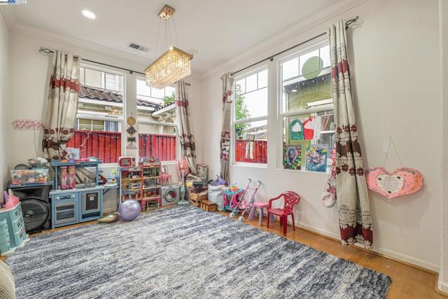 Welcome to luxury living in this spacious 5-bedroom, 3-bath home with 2,687 sq. ft. of living space in the desirable Eden Shores community. This home features an open and functional floor plan with bright living areas, a generous kitchen, and well-sized bedrooms, including a versatile 5th bedroom ideal for a home office, guest suite, or hobby room. The kitchen is well-equipped with modern stainless steel appliances, including a dishwasher, garbage disposal, microwave, and a Black Samsung LED screen refrigerator, making it a chef’s delight. There is also an extra second refrigerator in the garage for added convenience. Enjoy a spacious 3-car garage and maintenance-free front and back yards featuring artificial turf in the backyard for year-round beauty and effortless upkeep. Paid off Tesla Solar included for energy efficiency and cost savings. The low-maintenance backyard is designed for entertaining, with ample space to host gatherings, relax, or enjoy outdoor dining year-round. Community amenities include a sparkling pool, tennis courts, and shared spaces that encourage an active lifestyle. Conveniently located near shopping, dining, parks, and major commuter routes, this home combines comfort, flexibility, and community living. Make this house your home today!