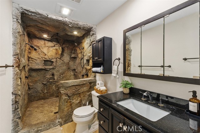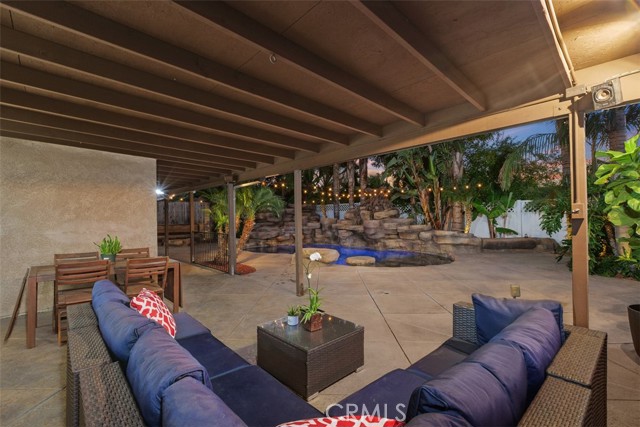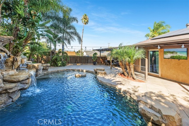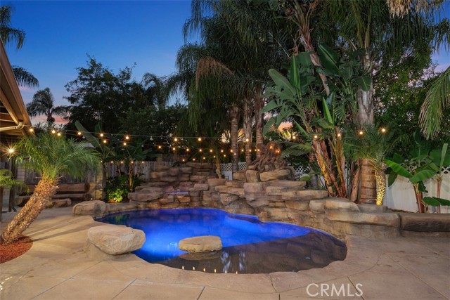 As you step into this resort-style retreat, you’re greeted by light, space, and the feeling that every day could be a getaway. Beautifully updated throughout, this single-story home features a custom rock pool and spa on a premium corner lot with gated RV parking — with the possibility to create an ADU (buyer to verify with the City of Corona), opening doors for multigenerational living or added income. LOW TAXES & NO HOA keep ownership simple. Inside, the open-concept design flows effortlessly across 1,624 sq. ft. with four bedrooms and two bathrooms. The newly added custom kitchen island and extra storage is a chef’s dream, paired with stainless steel appliances and seamless connection to the vaulted great room with cozy fireplace, LED lighting, and new LVP flooring (2025). Step outside to your private resort-like backyard oasis — a stunning rock pool and spa with waterfall and PebbleTec finish, a covered patio with TV, firepit, lush tropical landscaping, stamped concrete, accent lighting, storage shed, and gated dog run an entertainers dream. Thoughtful upgrades include a newer roof, new water heater (2025), newer dual-pane windows, newer HVAC, fresh interior paint (2025), a custom front door, mirrored wardrobes, smooth ceilings, solar panels, and elegant shutters. The primary suite opens directly to the backyard and features a luxurious walk-in rock & stone shower, while three additional bedrooms offer flexible living space. With welcoming curb appeal, a two-car garage with extended driveway parking, and ready for RV hookups, this home is move-in ready and built for the way you want to live. Close to schools, shopping, dining, and easy freeway access — it’s peaceful, bright, and ready to make everyday living (and unforgettable gatherings) feel effortless.