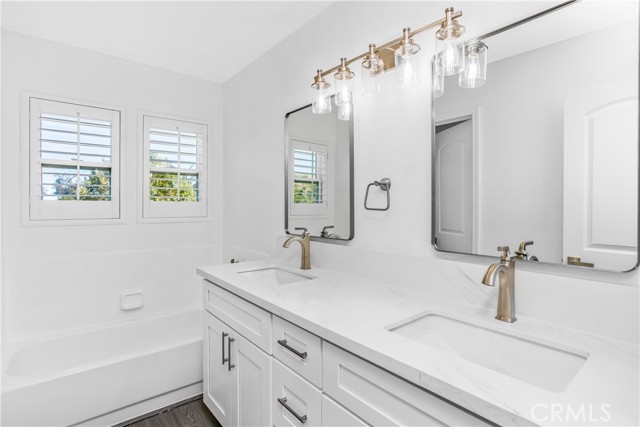 Welcome to this stunning 4-bedroom, 2-bath home featuring a bright and open floor plan, high vaulted ceilings, and stylish finishes throughout. The beautifully updated kitchen offers plenty of space for cooking and entertaining, complemented by recessed lighting and elegant plantation shutters that add a touch of sophistication. Downstairs, you’ll find three comfortable bedrooms and a full bathroom with a convenient shower. The private primary suite is located upstairs, offering peace and separation from the rest of the home, complete with a spacious bathroom featuring both a shower and a bathtub—perfect for relaxing at the end of the day. Enjoy outdoor living in the well-maintained front and back yards, ideal for gatherings, gardening, or simply soaking in the sunshine. Located just minutes from the freeway, this home combines comfort and convenience. Plus, you’ll love the low property tax rate, no HOA fees, and no solar fees—giving you more value and freedom as a homeowner.