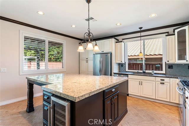 Nestled in one of the most sought-after communities, this beautiful home offers 4 bedrooms and 3 bathrooms, including a convenient full bedroom and bathroom downstairs—perfect for guests or extended stays. From the moment you arrive, you’ll be captivated by the magnificent curb appeal and inviting front porch—an ideal spot to relax and enjoy a peaceful afternoon. Step inside to discover an open and airy layout with vaulted ceilings and gorgeous tile flooring throughout. The formal living and dining rooms provide the perfect setting for entertaining family and friends, while the meticulously remodeled kitchen will surely impress even the most discerning chef. Featuring elegant cabinetry with soft-close drawers, sleek granite countertops, stainless steel appliances, a spacious island with dining counter, and even a built-in wine refrigerator, this kitchen truly has it all. Gather in the spacious family room, where a cozy fireplace creates the perfect backdrop for movie nights or quiet evenings at home. Upstairs, you’ll find two generously sized bedrooms, a full bathroom, and a large bonus room/den that can easily be transformed into a fifth bedroom, game room, or the ultimate man cave. The primary suite offers vaulted ceilings, a large walk-in closet, and plenty of natural light, creating a comfortable and serene retreat. Additional highlights include newer dual-pane windows, custom wood shutters, crown molding, QuietCool whole house fan, ceiling fans throughout, newer water heater, and both HVAC systems recently replaced for peace of mind and energy efficiency. Step outside and enjoy the beautifully designed backyard featuring a patio cover, concrete deck, firepit sitting area, and a detached patio space perfect for gatherings. Low-maintenance artificial turf, a dedicated garden area, and a side yard with potential boat or trailer parking make this yard both functional and fun. The 4-car garage comes equipped with cabinetry and built-in storage racks, and the tandem space offers an optional builder conversion for an additional downstairs bedroom if desired. And the best part? LOW TAXES and NO Mello-Roos! Enjoy all the wonderful amenities Horsethief Canyon Ranch has to offer, including community pools, parks, sports courts, clubhouse, fitness center, and more—all with a true sense of community and scenic mountain views. This is the home you’ve been waiting for—where comfort, style, and value come together beautifully.