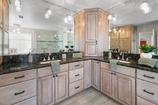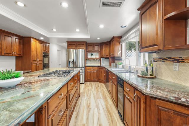 Stunning 5-Bedroom Luxury Home in San Diego’s Premier Neighborhood!! Nestled in one of San Diego’s most desirable areas, this exquisite 5-bedroom, an office & 3-bathroom home is a true sanctuary. Sitting on over an acre of beautifully landscaped grounds & amazing curb appeal, this property offers the perfect balance of luxury, comfort, and outdoor living. Step into your own private resort with multiple patios and sitting areas scattered throughout the lush backyard, each offering a unique space to relax, entertain, or take in the serene surroundings. The custom-built pool and spa provide the ideal setting for sunny afternoons, while the calming waterfall adds a touch of tranquility to your outdoor oasis. A beautifully designed mini putt-putt golf course offers endless fun for family and friends. Towering trees surround the space, offering privacy and a connection to nature. Inside, the home boasts a spacious and open floor plan, with 5 bedrooms—one bedroom & office on the main level and four upstairs for added privacy. The upstairs features brand new flooring, while throughout the home, the tasteful fresh coat of paint and high-end finishes create an elegant, yet inviting atmosphere. The chef-inspired kitchen seamlessly flows into the living area, perfect for gatherings and special occasions. Plenty of space to add an ADU. Separate access-gate for the RV parking area. Synthetic turf to save on water. With a 3-car garage, paid-off solar electric system (19kW) with transfer switch allowing use of generator during power outage-solar hot water system reduces energy costs & stress on water heater. A custom-built barbecue area for outdoor cooking, this home has every modern convenience. Located in an outstanding school district and just a short drive from the picturesque Lake Poway, this property truly offers the best of both worlds—private luxury and prime location. Don’t miss out on this rare opportunity to own a slice of paradise in San Diego.