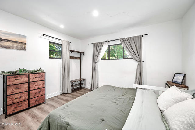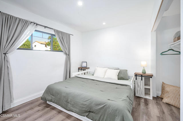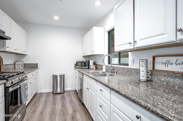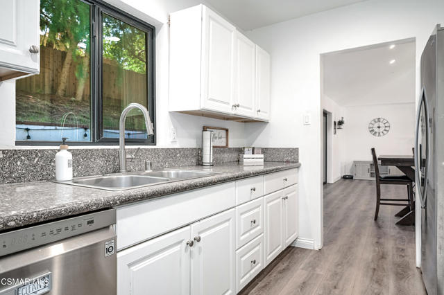 Rare Opportunity in Thousand Oaks! Step into this beautifully renovated single-family gem nestled in the heart of Thousand Oaks. With soaring 14-foot ceilings, the home feels open, airy, and effortlessly inviting. Every detail has been thoughtfully upgraded--from energy-efficient double-paned windows and a sleek slider door, to central heating and air, stylish laminate flooring, and a cozy wood-burning fireplace.Enjoy two generously sized bedrooms and two fully remodeled bathrooms, each showcasing modern, designer finishes. Recessed lighting adds ambiance throughout, while the fenced front yard features low-maintenance artificial turf--perfect for play and curb appeal! The backyard features mature trees and a covered patio, creating a private retreat ideal for relaxing or entertaining. Additional highlights include a covered carport and a separate laundry room building, offering both convenience and flexibility. Just minutes from the Civic Arts Plaza, The Lakes, upscale dining, and so much more! This home blends comfort, style, and lifestyle in one exceptional package.Whether you're a first-time buyer or seasoned investor, this is a rare chance to own a thoughtfully upgraded home in Thousand Oaks!