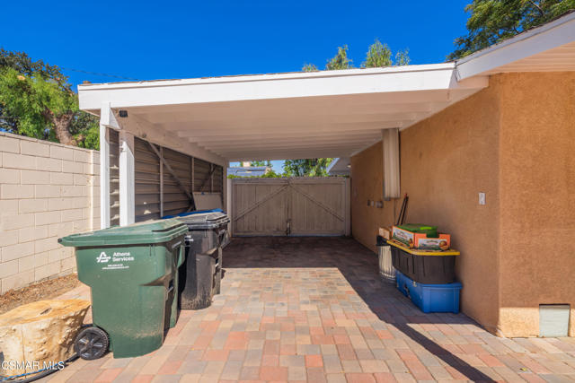 Bring your imagination and style to this 2-bedroom, 2-bath home offering 1,121 square feet of comfortable living space. The open kitchen offers a large center island and ample storage, all flowing into a sunken living room with a grand picture window and skylights that fill the room with natural light. The primary suite features a private patio and a generous walk-in closet with built-ins: an ideal canvas for your dream retreat. Each bedroom features its own ensuite bathroom, creating a nice, practical design. Outside, enjoy a tiered patio surrounded by privacy and greenery, plus a covered carport for convenience. Nestled on a quiet, serene street, this home offers the perfect blend of character and opportunity for those ready to make it their own. Create the secret hideaway that you've been long for.