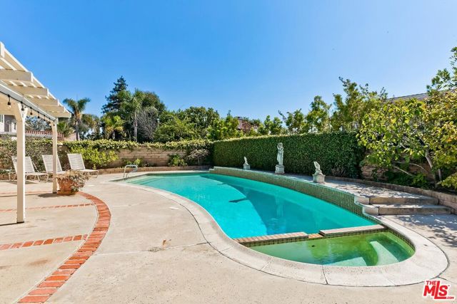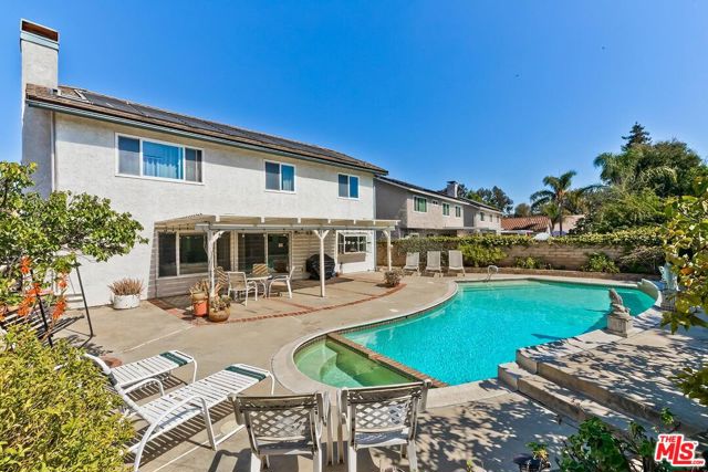 A rare find in the sought after Oakridge Estates on a cul de sac. Located in the Goldilocks zone of Newbury Park.., just minutes from the excellent schools of the CVUSD , Pepper Tree Park, hiking, the beaches and more! This cosmetic fixer offers its new owner an incredible opportunity to make this home your own. The term "great bones" was invented with this house in mind. Enter into semi formal entry with soaring vaulted ceilings. the skylights light up the living and dining room and stairway, complete with lovely window seats. Enter into the island kitchen with indoor Bbq and kitchenmaid double oven, that seamlessly connects to the family room that boasts a fireplace and wet bar..all exiting to the spacious yard with lots of patio space, pergola for poolside dining, Oh, did I mention inviting pool and spa ..and even a nice mountain view from the yard. A beautiful open staircase leads you up to the second floor. The high ceiling create a very bright and open feel. Upstairs you will find 3 or even a huge bonus could be 4th bedroom. The generous primary bedroom with double door entry has high ceilings completed with a large bathroom suite. A laundry room and two car attached garage with direct entrance round out this incredible opportunity.