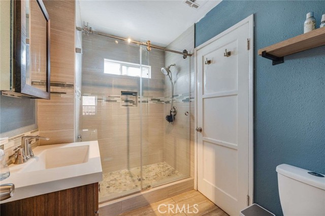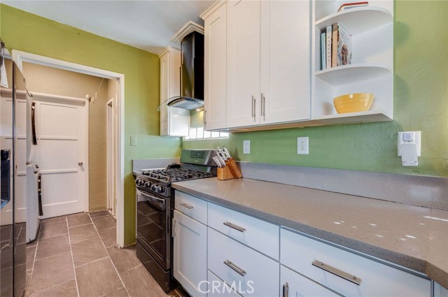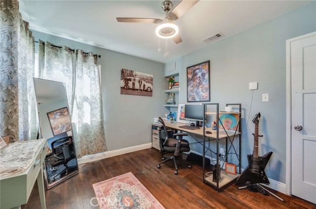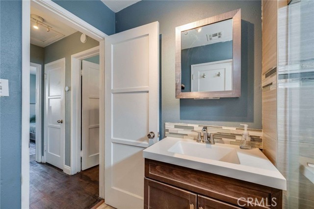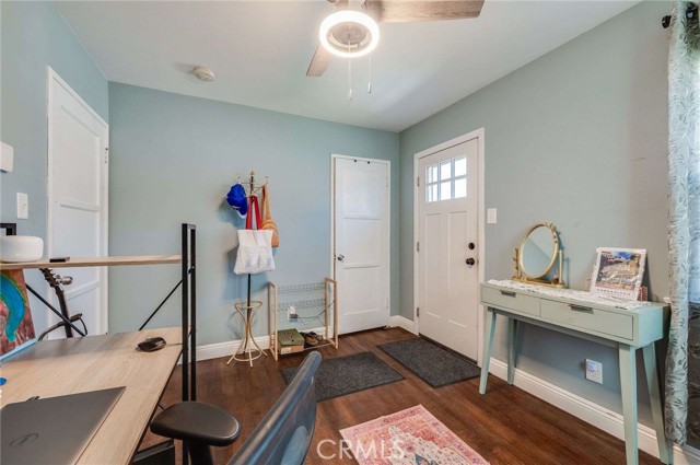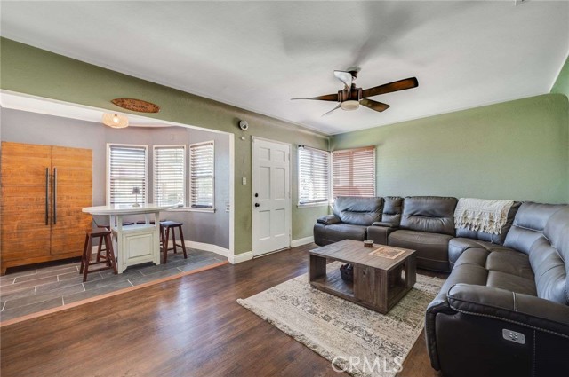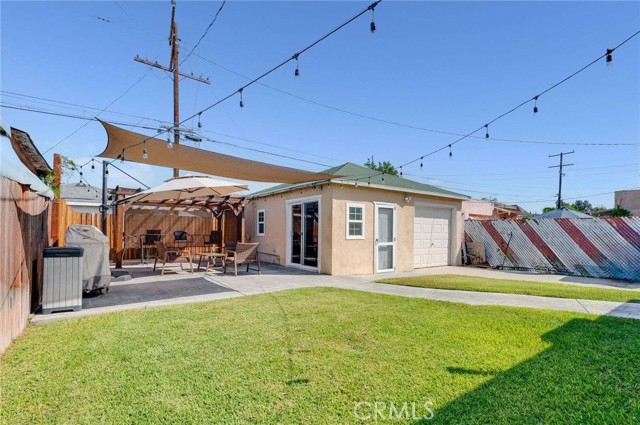 A stylish updated home that blends timeless 1930s character with today’s modern comforts. Step inside and you’ll love the natural light streaming through the windows and the warmth of real hardwood floors throughout the inviting living space. The remodeled kitchen features sleek quartz countertops, crisp white cabinetry, and stainless steel appliances — the perfect space for cooking and conversation at home. The updated bathroom feels like a private spa with custom tilework and a frameless glass shower. There are two nicely sized bedrooms and an inside laundry.  Out back, your private oasis awaits. Enjoy al fresco dining under the pergola, unwind on the spacious patio, or gather with friends beneath the glow of string lights. The gated driveway and detached garage offer privacy, parking, and potential for an ADU. The garage has been finished with drywall, flooring, and AC, and functions as a home gym. Upgrades include new Central AC, EV charger ready, updated electrical, dual-pane windows, and updated plumbing. Close to Metrolink and the Citadel Outlets.