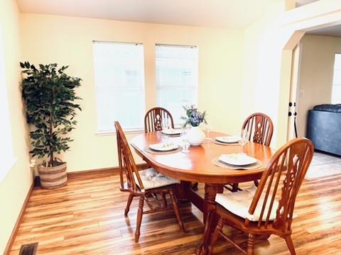 Welcome to this charming well appointed home located in the vibrant city of Hayward. Spanning a generous 1,534 square feet, this residence boasts three bedrooms and two full bathrooms, offering ample space for comfortable living. The kitchen is well-equipped with a dishwasher, microwave, gas range with a self-cleaning oven and refrigerator, making it a chef's delight. The kitchen features a cozy breakfast nook, and skylight, creating a bright and inviting space for meals. There is a formal dining room for special gatherings. Laminate flooring runs throughout the home, providing durability and easy maintenance. Enjoy cozy evenings by the fireplace in the separate family room. The home includes convenient in-unit laundry with new washer and dryer. Located within the Hayward Unified School District, it is suitable for families seeking proximity to educational facilities. Additional amenities include a skylight in the bath, vaulted ceilings, central heating, and energy-efficient features like double-pane windows and low-flow toilets. A large retreat style backyard with special lighting features perfect for relaxng and entertaining. The park offers several amenities, pool, hot tub, fitness center and club house, just to name a few. The perfect home waiting for you!