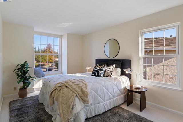 Tucked at the end of a quiet cul-de-sac in San Ramon’s desirable Rancho Ramon neighborhood, this beautifully maintained home welcomes you with a direct east-facing front door and a perfect blend of comfort, flexibility, and modern updates. A newer roof, updated windows, and refreshed kitchen and baths provide peace of mind, while the thoughtful floor plan is ideal for both entertaining and everyday living. The main level features a spacious living room, formal dining area with built-in bar, and a comfortable family room that opens to the backyard. A bedroom and full bath on this level are perfect for guests or extended family, while the bright rear-facing office could easily serve as a sixth bedroom. Upstairs, four bedrooms include a generous primary suite with en-suite bath and private balcony overlooking the rolling hills. Outside, a sparkling pool with diving board, spa, and ample patio space create an inviting retreat—ready to welcome its next chapter.