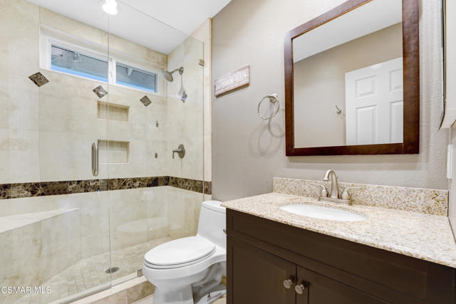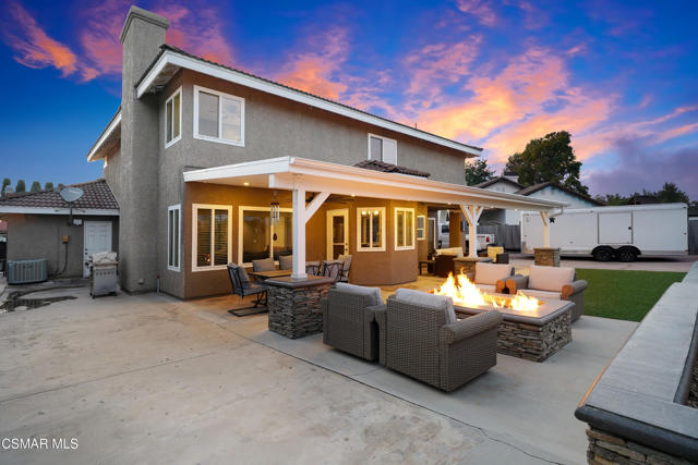 Welcome to 610 Nicole Drive in beautiful Newbury Park--a rare turnkey gem nestled in the sought-after Conejo Valley Unified School District with NO HOA and exceptional RV parking on both sides of the property.This stunning 2-story traditional home is fully remodeled with top-tier finishes and thoughtful design throughout. Enter through double doors to a bright, airy floor plan with soaring vaulted ceilings, large tile floors on the main level, and custom paintwork that elevates every space. The elegant custom staircase features new wood treads and iron balusters that set the tone for the home's craftsmanship.The gourmet kitchen is a chef's dream with granite countertops, rich dark cabinetry, stainless steel appliances, a center island with tray ceiling detail, mosaic tile backsplash, and an inviting breakfast nook with views to the beautifully designed backyard. The adjacent family room showcases a cozy gas log fireplace and recessed lighting, perfect for relaxing or entertaining.All bedrooms are located upstairs and feature wood-look luxury vinyl plank flooring, paneled closet doors, ceiling fans, and abundant natural light. The expansive primary suite is a true retreat with vaulted ceilings, double-door entry, and a spa-like ensuite featuring dual vanities, a jetted tub, custom tile shower with dual showerheads, and a tray ceiling.Step outside to a backyard oasis ideal for California living: enjoy the custom patio cover with plank ceiling, recessed lighting, masonry-wrapped columns, and built-in ceiling fan. The outdoor lounge area boasts a gorgeous glass rock fire feature, perfect for stargazing or entertaining. Low-maintenance artificial turf, professional hardscaping, lighting, drip irrigation, and dual 12'x67' and 10'x60' gated RV parking pads offer unmatched versatility.Additional upgrades include: dual-pane windows, newer HVAC system, indoor laundry room, epoxy-finished 3-car garage with WiFi openers, extensive storage, and a stamped concrete driveway. Conveniently located near hiking/biking trails, top-rated schools, and just minutes from the 101 freeway and local beaches.This remodeled, move-in ready home is the full package--don't miss your opportunity to own this Newbury Park beauty with RV parking and more!