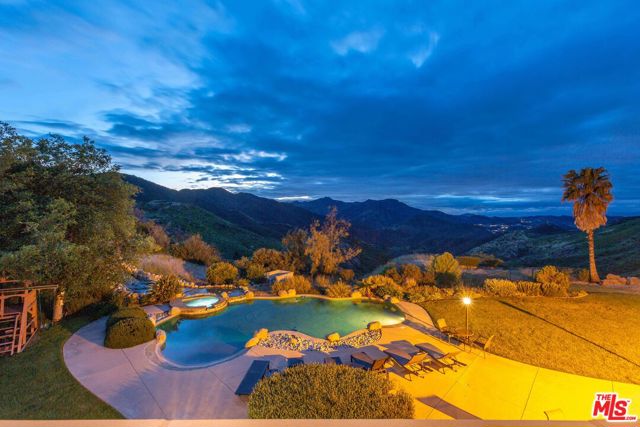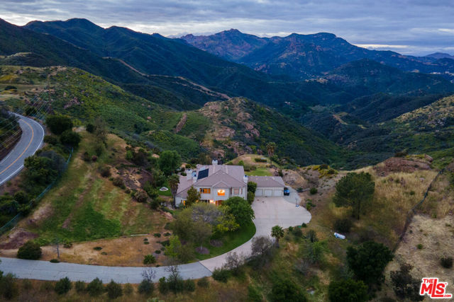 Tucked away in the serene hills of Malibu's breathtaking canyons, stands as one of California's most distinguished and private residential estates. This gated compound offers unmatched seclusion amid beautifully landscaped grounds and showcases unobstructed panoramic views of Boney Ridge, Sandstone Peak. Spanning approximately 11 acres, the 6,734 sq. ft. residence features 6 bedrooms and 7 bathrooms, blending refined luxury with timeless architecture. A grand portico entry welcomes you into a dramatic great room and soaring 24-foot ceilings, setting the tone for the home's elegant scale. High-end finishes are found throughout, including an expansive primary suite with a private sauna, a resort-style pool and spa with cascading waterfall, and a three-car garage designed to accommodate a boat or RV. With ample space to add an ADU, this property offers endless possibilities for those seeking privacy, sophistication, and natural beauty in Malibu's most scenic setting.