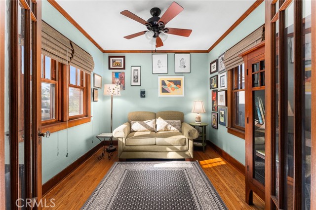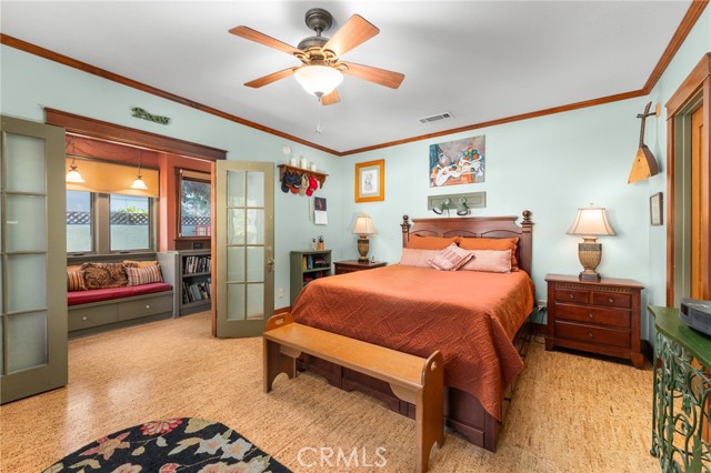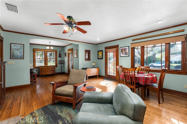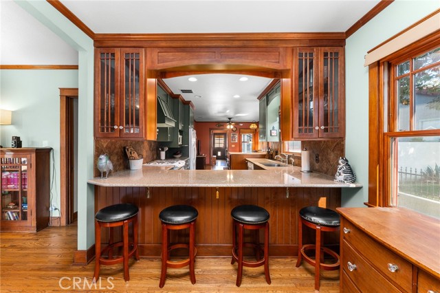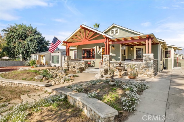 Step into the charm of this 1926 Redlands bungalow, thoughtfully remodeled by architect Erik Peterson. Features 3 bedroom, 2.5 bathrooms, 1688 SqFt, on a 8850 SqFt lot. Located near the University of Redlands, this home blends classic character with modern comfort. A welcoming front porch offers multiple sitting areas perfect for enjoying quiet mornings or greeting friends and neighbors. Inside, you’ll find original hardwood floors, as well as cork flooring, rich mahogany woodwork, and custom cabinetry that showcase the craftsmanship of the era. The kitchen features granite countertops, generous storage, and unique Redlands citrus-themed tile-work that adds a touch of local history. The spacious primary suite includes a walk-in closet, a relaxing bathroom with a jetted tub, separate walk in shower, and double vanity. The large backyard provides exceptional outdoor space with ample parking, RV parking, a carport, and convenient alley access. A versatile detached studio offers endless possibilities as an ADU, art space, game room, gym, or creative retreat. This home also carries a bit of Redlands pride, having been featured on the YMCA Home Tour in 2009. A rare blend of historic charm, thoughtful upgrades, and usable outdoor space this bungalow is ready to welcome its next chapter.