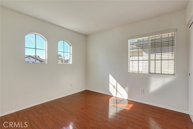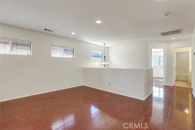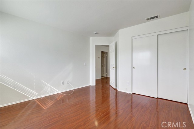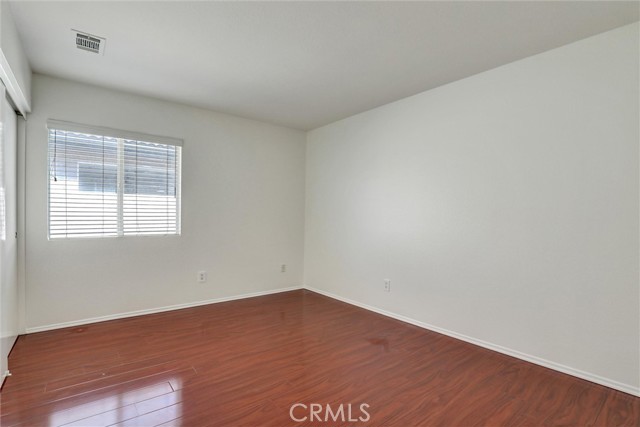 Retreat to the spacious master bedroom, designed with comfort and versatility in mind. Featuring rich polished wood flooring and crisp white walls, the room exudes a clean and modern aesthetic. Dual windows with blinds invite natural light while offering privacy. A ceiling fan with integrated lighting ensures year-round comfort, while the ceiling vent enhances airflow. This master bedroom offers the perfect canvas for your personal style.