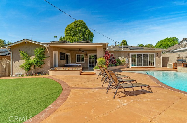 Step outside to your private oasis: a sparkling pool and spa, an inviting covered California Room, outdoor fireplace, and lush grassy area ideal for relaxation or recreation. This is true indoor-outdoor living at its finest.