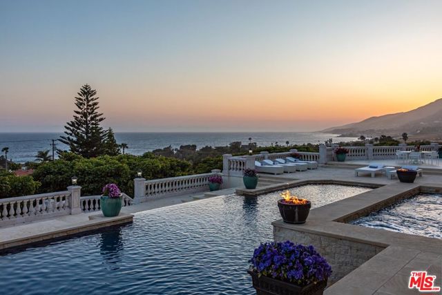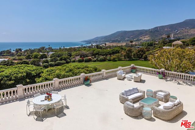 Private Malibu Ocean-View Estate on approx. 5 acres spanning 13,385 square feet with 8 en-suite bedrooms and 11 bathrooms, positioned to capture sweeping whitewater Ocean views from nearly every room. Located 1 block from the famous Zuma Beach, the property pairs estate-scale acreage with rare beach proximity. Designed for refined living and entertaining, the property includes a dedicated office, fitness room, game room, wine cellar, and private theater. Expansive, full-width ocean-facing decks on all 3 levels feature multiple dining and lounge areas, sitting spaces, and an outdoor fireplace, creating seamless Southern California indoor-outdoor living while commanding sweeping coastline vistas. Additional ocean-facing decks feature sitting areas, an outdoor fireplace, and unobstructed ocean views. An infinity-edge pool and oversized spa overlooking the Pacific Ocean, enhanced by cascading waterfalls and framed by manicured Italian and rose gardens. The grounds include a koi pond with koi and turtles, additional waterfalls, and over 30 mature fruit trees, creating a private resort-like atmosphere. The property offers 2 full-size tennis courts convertible to pickleball, including 1 privately lighted court for evening play - a rare amenity within Malibu. Set across 3 legal parcels, the property previously accommodated a 3-hole golf course and provides space for equestrian facilities including a barn, stables, and riding arena, as well as a private sport court or additional recreational amenities. The coveted west-end of Malibu beaches are less than a 5-minute stroll or 2-minute golf cart ride away, with a pedestrian crosswalk providing direct access to the sand. Minutes from Point Dume Village, Trancas Country Market, acclaimed dining, boutique coastal shopping, and Malibu's top-rated schools, with approx. 30-minute access to Camarillo Airport for private jet travel. Legacy, multi-generational properties of this caliber are rarely offered.