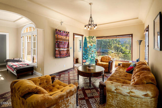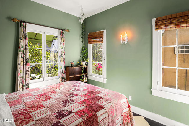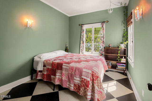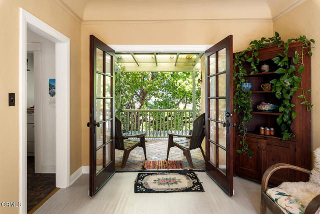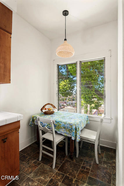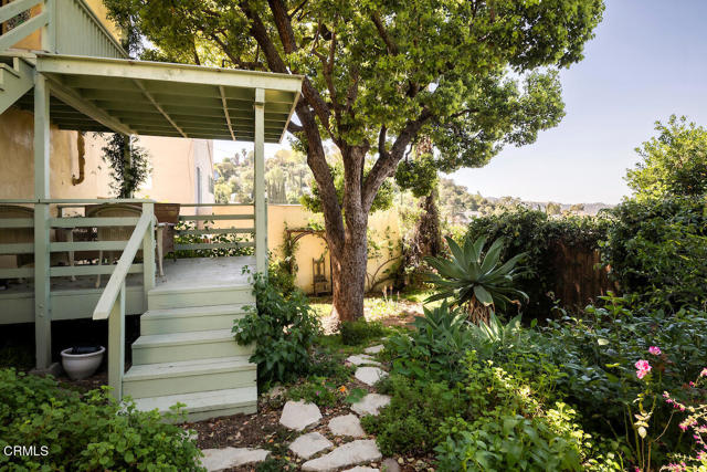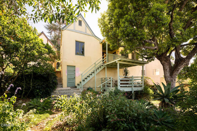 Nestled in the picturesque Adams Hill neighborhood, this charmimg 1925 English cottage has beautiful sweeping views of the city lights and mountains. Upon entering the home you will notice an abundance of natural light, wood floors throughout the house, a formal dining room with adjacent balcony. The cozy kitchen has tiled counter tops, plenty of cabinet space as well as a breakfast nook overlooking the lush backyard. There are 2 bedrooms flanking each side of the house with the 1 full size bathroom located between the two bedrooms. The tranquil backyard is highlighted with 2 decks, both with beautiful city skyline views, mature trees and plants seen in many homes of this era. The house is perfectly situated between DTLA, Silverlake and and is a stones throw away from the trendy shops in ER & HP.