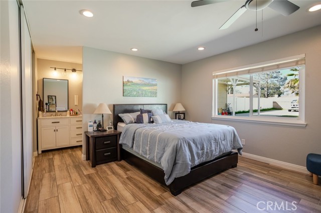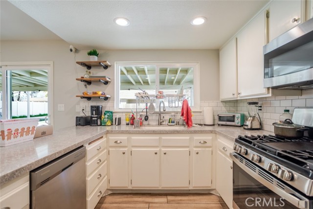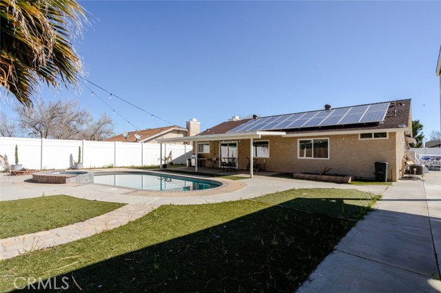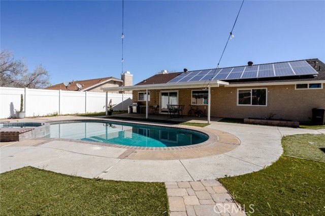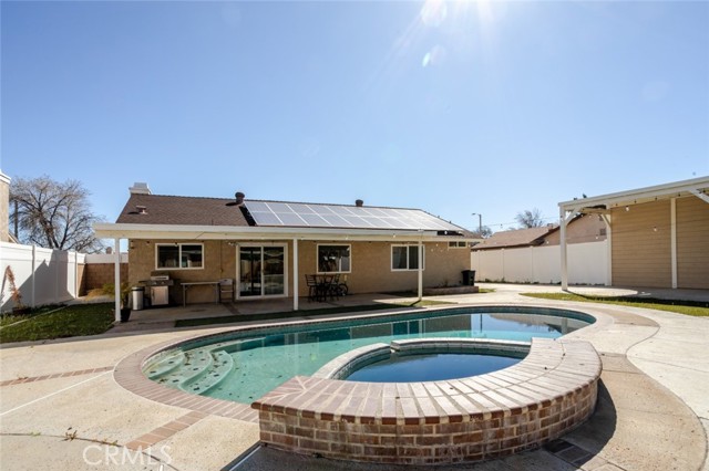 The home also includes an attached garage and generously sized front and back yards. The backyard offers a private retreat with a sparkling pool and relaxing hot tub, ideal for enjoying Southern California's beautiful weather and hosting gatherings.