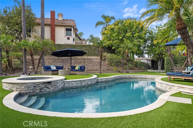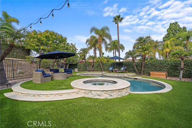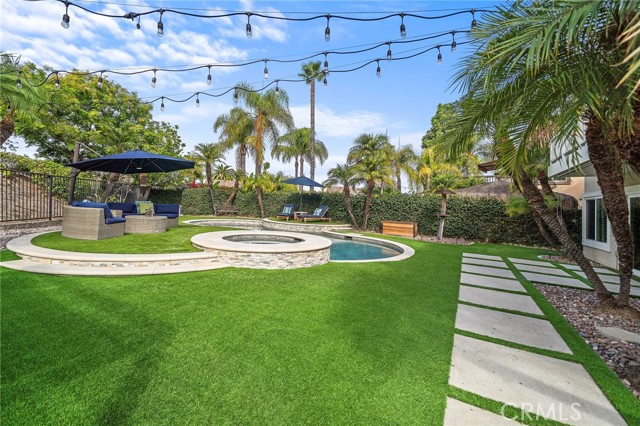 The open-concept design connects the kitchen to the spacious family room and resort-style backyard—complete with new landscaping, low-maintenance turf, a built-in BBQ island, new PebbleTec pool and spa with updated equipment, a putting green and sand pit, and multiple lounging areas ideal for entertaining or soaking up the sun. Enjoy incredible views of Mission Viejo's 4th of July fireworks from your own private oasis!