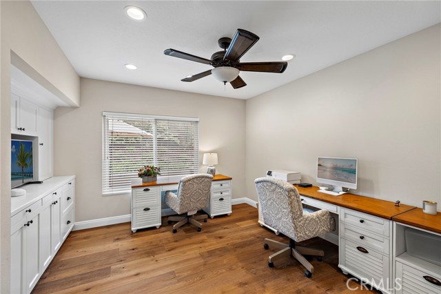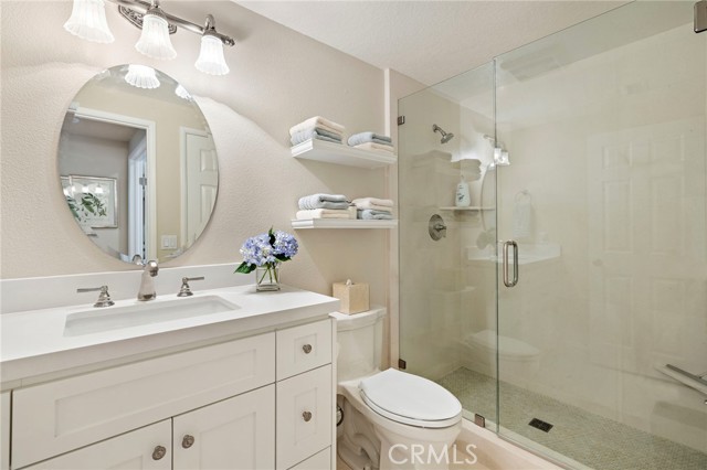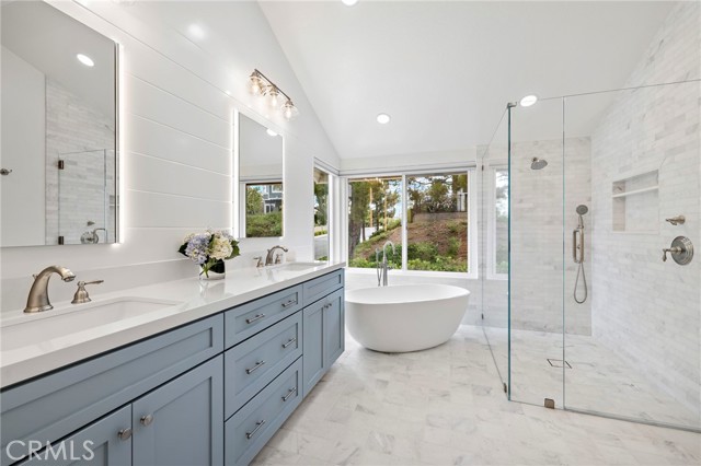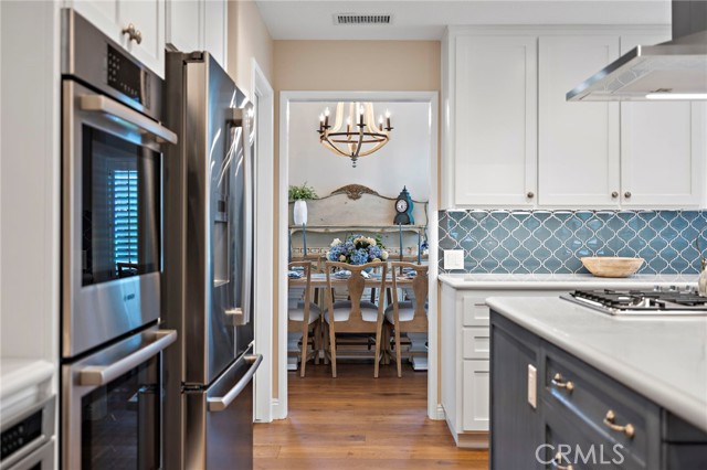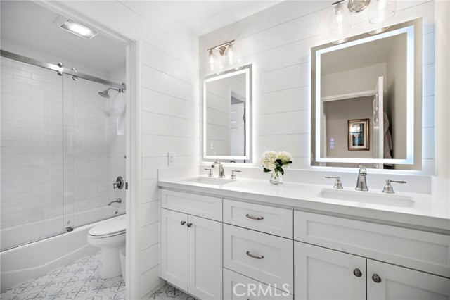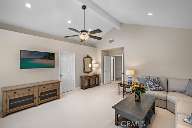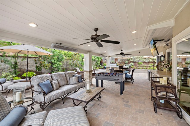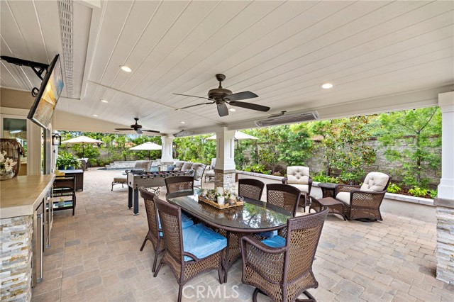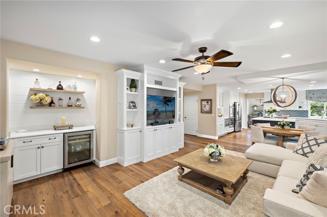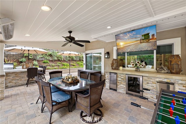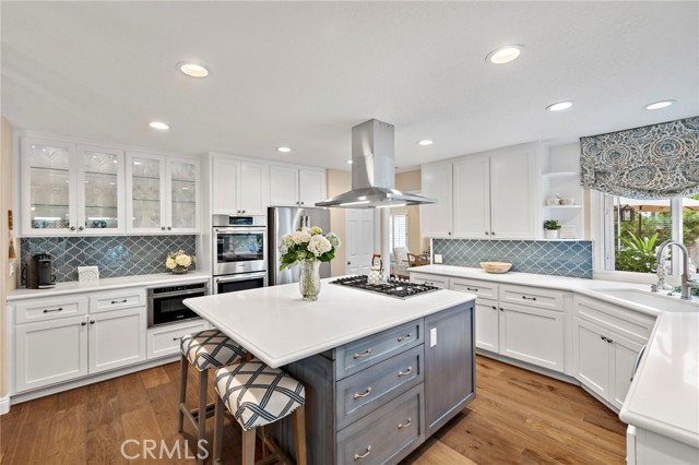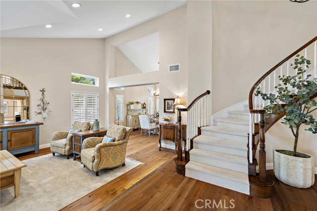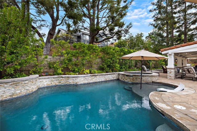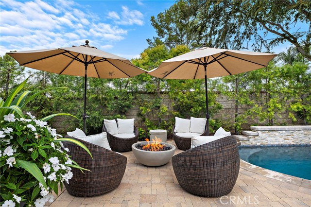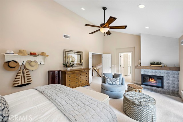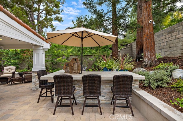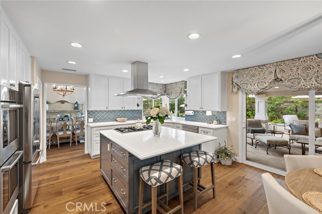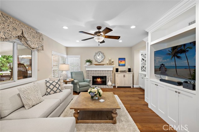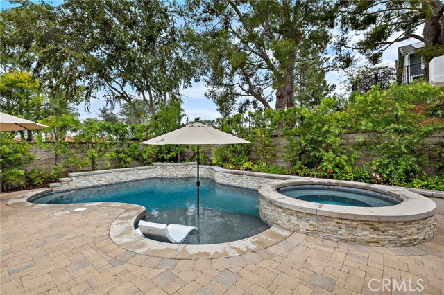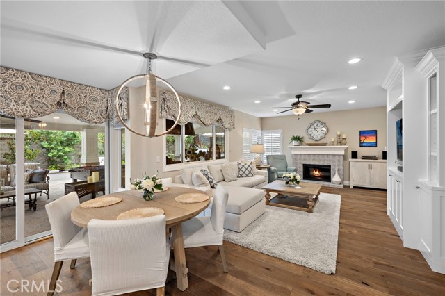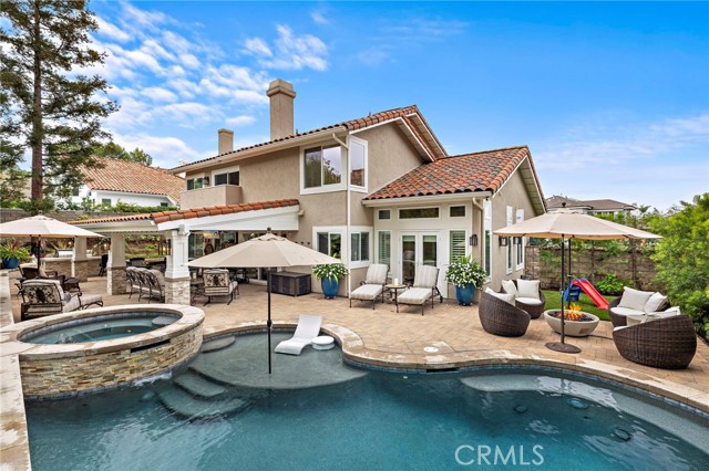 A remarkable home that has been completely and thoughtfully reimagined from top to bottom. Set on an oversized corner lot within Mission Viejo’s prestigious guard-gated community of Canyon Crest, this COMPLETELY REMODELED 5-bedroom, 3-full bath residence with a 4-car garage offers a perfect blend of modern comfort and exceptional outdoor living. The open-concept floor plan includes the convenience of a main-floor bedroom and bath ideal for guests or a home office. The heart of the home is a fully remodeled kitchen featuring custom cabinetry with pull-out storage, an expanded island, and Bosch stainless steel appliances—seamlessly connecting to the family room with its custom-built cabinetry, beverage center, and new wood fireplace mantel accented by a tiled façade. Hardwood flooring flows throughout the main level, complemented by freshly installed carpet upstairs and custom window treatments throughout. The primary suite has been thoughtfully reimagined with a shiplap accent wall, updated fireplace with new wood mantel and tiled façade, remote-control blinds, and a completely remodeled spa-inspired bathroom including a dual sink vanity, a TOTO smart bidet toilet, and a large walk-in closet with Closet World organizers. Upstairs, the secondary bedrooms feature remote-control blinds and share a beautifully updated hallway bath, while the bonus room or fifth bedroom provides additional flexibility for living or recreation. The outdoor living experience rivals a private resort. A saltwater Pebble-Tec pool and spa anchor the rear yard, surrounded by interlocking pavers, low-maintenance turf, and beautifully designed landscaping. The impressive, covered patio structure includes two ceiling fans, electric heaters, a beverage refrigerator, ice maker, and mounted TV—perfect for hosting gatherings, watching the big game, or relaxing poolside. A built-in BBQ island and dedicated trash enclosure complete this entertainer’s dream. Additional highlights include; Whole house Pex Piping, new dual-pane windows and French doors, new HVAC system, remodeled laundry room, built-in garage cabinetry, and access to Canyon Crest’s exceptional amenities—three community pools, spa, clubhouse, fitness center, tennis and pickleball courts, plus membership to Mission Viejo Lake.