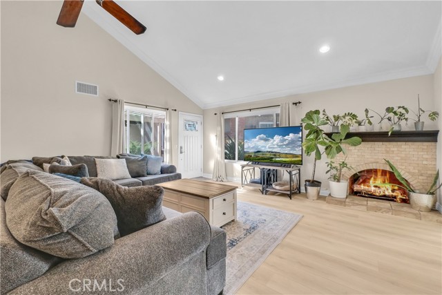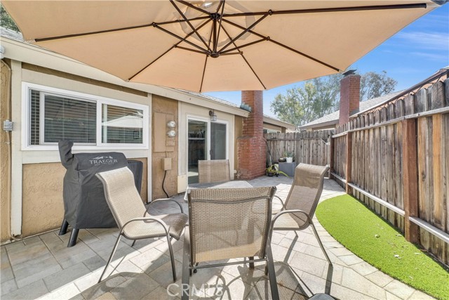 Discover the perfect blend of sophistication and style in this beautifully upgraded 3-bedroom, 2-bathroom condo, offering 1,220 sq. ft. of open-concept living in one of Mission Viejo’s most desirable neighborhoods. Step inside to an inviting open floor plan that seamlessly connects the living, dining, and kitchen areas—perfect for entertaining and everyday living. The spacious chef’s kitchen boasts a stunning oversized island, ideal for gatherings and culinary creativity. Enjoy the warmth of brand-new laminate flooring throughout and the fresh, modern appeal of new interior paint that enhances every room. Comfort is assured year-round with a new HVAC system ensuring efficiency and peace of mind. The primary suite offers a private retreat, complemented by two additional bedrooms perfect for guests, family, or a home office. Step outside to your private backyard oasis, newly finished with elegant hardscape pavers and low-maintenance synthetic grass, ideal for outdoor dining or peaceful relaxation. Additional highlights include a two-car garage with direct access, a quiet cul-de-sac location for added privacy, and easy access to the freeway, award-winning schools, shopping, and dining. Experience modern elegance, comfort, and convenience—all in the heart of Mission Viejo.