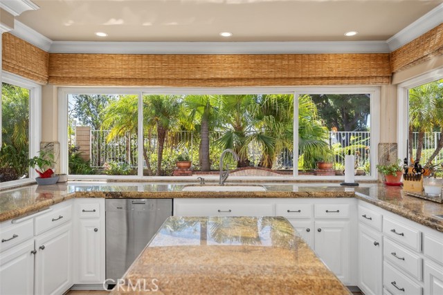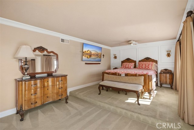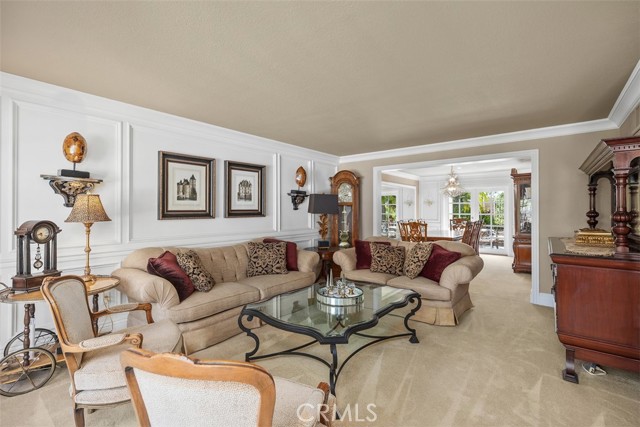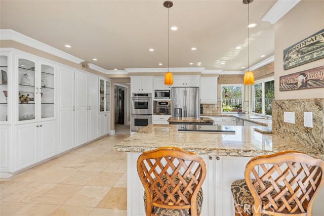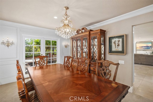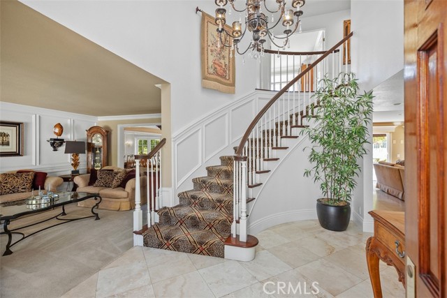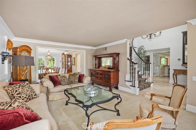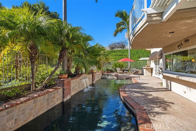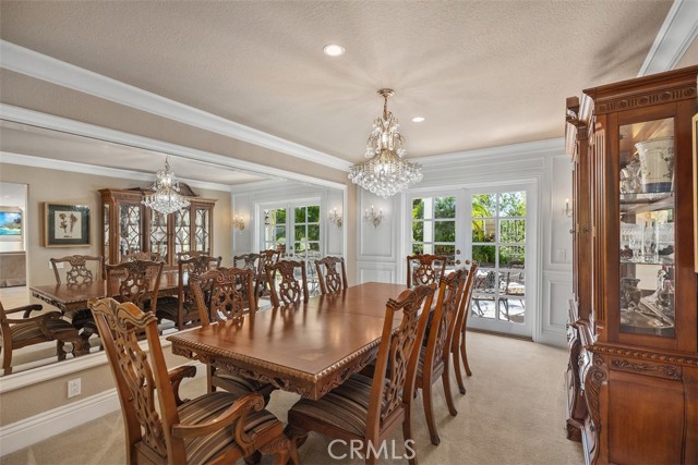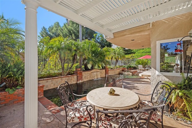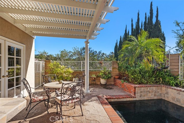 Your love for 22561 Demasia begins as you drive in along the 100+ acre Wilderness Glen park and trail system. If you love being surrounded by nature, have I got a house for you. This is a special lot, privately nestled into the hills with wilderness across the street. Additionally, it is one the most desired floor plans from this era of homes, with the best of all embellishments one could option a property with. We begin with a stately driveway and spacious 3 car garage. Fabulous hard scape adorns the front yard with a wrought iron gate enclosing the verdant front yard. This is a space that will captivate you morning after morning when the sun peeks over Saddleback Mountain which stands majestically above the ridge which separates this home from Lake Mission Viejo just 5 minutes down the road. Relaxation or exhilaration are yours between the resort style pebble tech salt water pool and spa in the back yard, complemented by a built in BBQ set up for at home good times, or you can take the family and friends down to the lake, as you'll be a member. You get all that, and you've yet to set foot in this brilliant 4 bedroom home, with an optional 5th on the main floor if needed in lieu of the existing oversized home office/bar with it's adjoining full bathroom. The formal living room is oversized and looks out upon the front yard through a wide boxed out window which really brings the outside in. The dining room is also sizable and opens up to the pool deck via a set of French Doors. The kitchen does not disappoint and is the hub of the home being open to the family room. This great room space is framed by a connection to the bar and office on one side, and views of the pool and more green nature through a pair of sliding doors out the back of the house. Heading up the sweeping stairs, you'll appreciate the programming of the floor plan. You've got the massive primary suite spanning the full rear of the home, with a large sitting room which exits out to a lovely view balcony. Grand primary bathroom clad with timeless travertine marble, and miles of countertop! (exaggeration) Two of the secondary bedrooms are spacious and well separated from the primary for sound consideration. The other jr. bedroom is on the opposite side, and is also big, with two amazing closets! Wonderful views from nearly every window, and throughout the lush grounds. No fluffery here, this is a quality offering, that you should see for yourself. Well maintained home with pride of ownership.