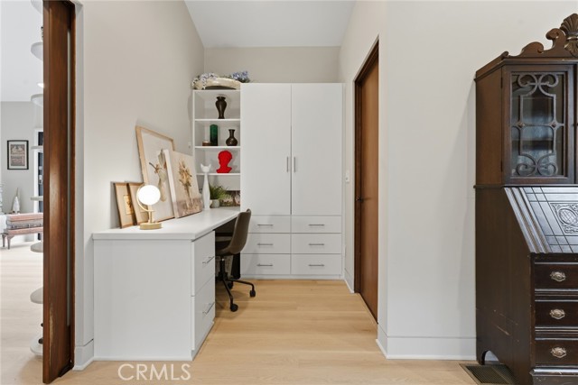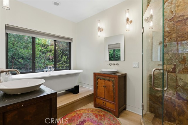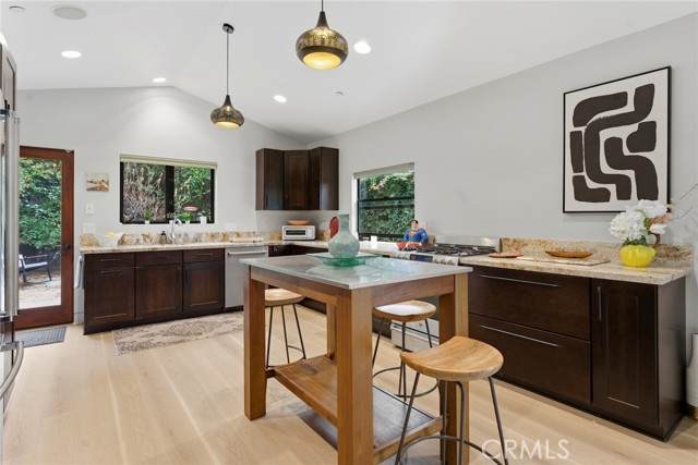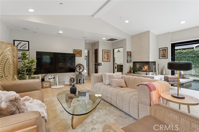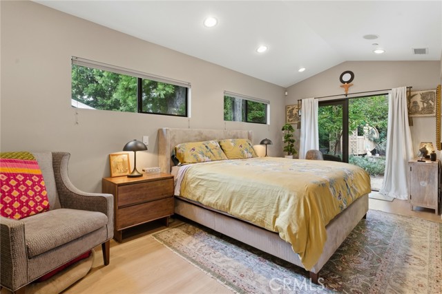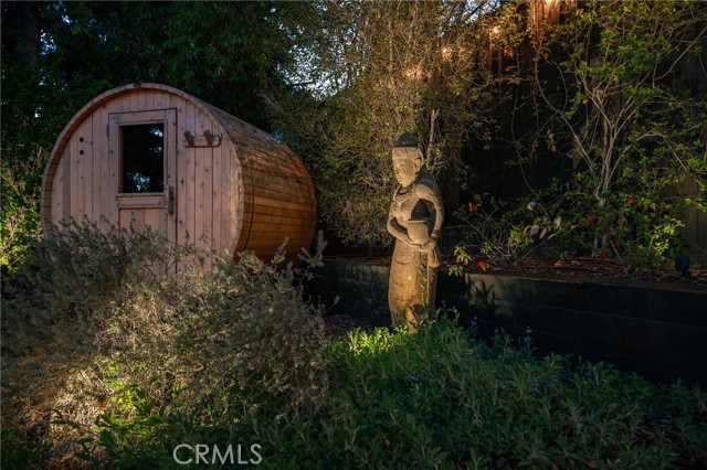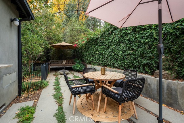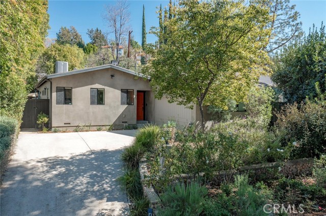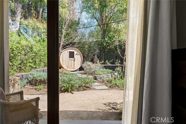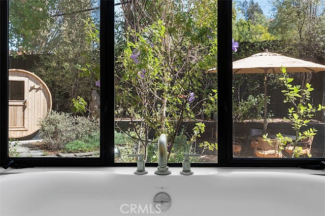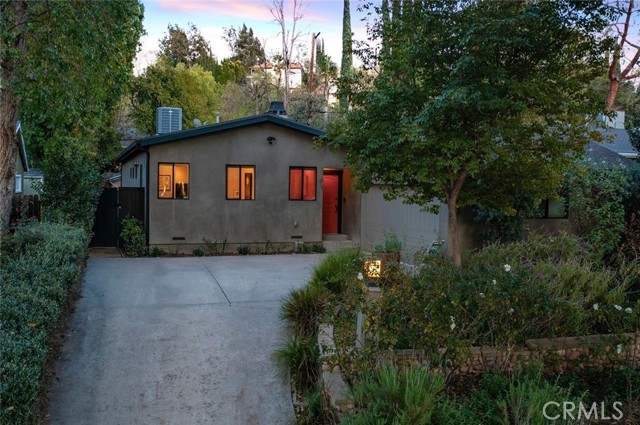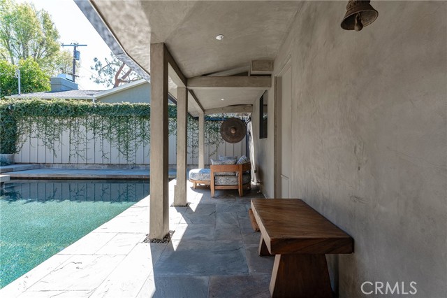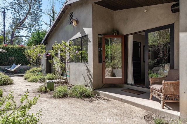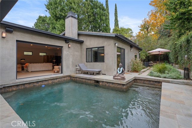 Immaculate California contemporary showstopper with separate studio/office/bonus room! Complete ground up reconstruction designed by Busch Design Build, renowned for award-winning green and sustainable architecture. Upon entering the property, you are greeted by a handmade front door that opens to a private courtyard with swimming pool. Step inside the home to find reimagined interiors featuring pitched ceilings, built-in speakers, Milgard aluminum windows, custom shades for optimal light and privacy, and brand new flooring. The spacious living room has floor to ceiling built-in bookshelves, smooth stucco fireplace, and is highlighted by an expansive Fleetwood sliding pocket door with full screen that opens directly over the swimming pool artfully combining indoor/outdoor living. Frosted glass pocket doors open off the living room to a separate guest bedroom/office with built-in desk, storage closets, & spa-like bathroom with teak wood flooring & terracotta smooth stucco walls. The oversized kitchen overlooks the backyard and features custom soft close cabinets, pantry pullout storage, stone counters, and stainless appliances. A dining space off the kitchen with a sliding glass door leads to an outdoor patio perfect for alfresco dining. The primary suite is truly a sanctuary featuring French doors that open onto a private patio overlooking the backyard, a large walk-in closet with custom built-ins, and a luxurious en-suite bathroom with one-of-a-kind Mongolian vanities, Victoria + Albert bath tub, and unique walk-in shower with green onyx tiling. This artistic retreat boasts a detached studio with pro-grade sound proofing, custom low noise HVAC system, private bathroom, and overlooks a front garden with mature lush landscaping. This space can alternatively be used as a home office or guest quarters. The idyllic grounds feature PebbleTec black onyx swimming pool with bluestone deck & covered patio, sprawling garden conceived by The Great Outdoors Landscape Design with drought tolerant & native plants, 4 person Swedish barrel sauna, & large patio with custom gas fire pit. Eco-living features include high efficiency cellulose wall insulation, solar system, full house water filtration and AccuClean® HVAC whole-home air cleaner. Desirably located south of Ventura Blvd adjacent to Topanga Canyon shops/eateries, Westfield Topanga Mall/Village, Warner Center, hiking trails and minutes to Malibu. Don’t miss this spectacular offering.