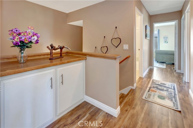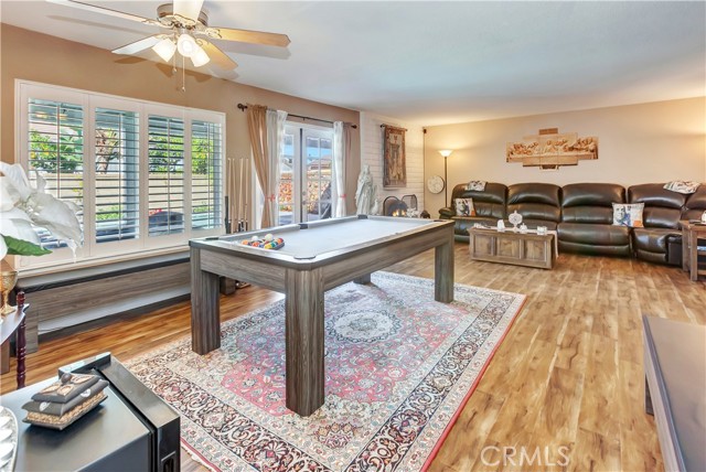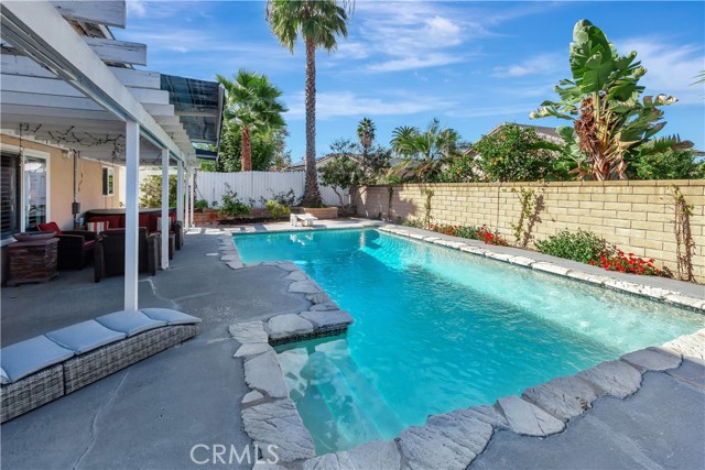Fantastic opportunity to own a 4bd 2.5bth + office pool home. Laminate flooring throughout with remodeled Kitchen featuring granite counters, newer cabinets, generous sized eating area and formal dining. Large living room with fireplace and french doors leading to the rear patio deck. Other upgrades include Dual Pane windows, newer roof, and newer HVAC. Upstairs rooms are light and bright with abundant space. Spacious Primary Bedroom features its own balcony with beautiful views of Saddleback Mountain. Property is adorned with abundant fruit trees throughout. Easy access to the 5 freeway as well as surrounding Parks & Amenities.