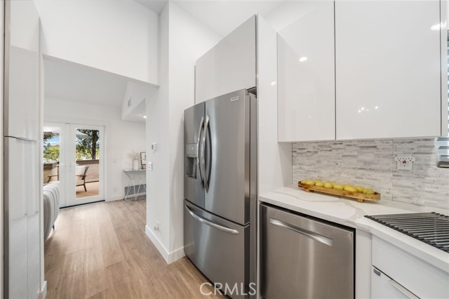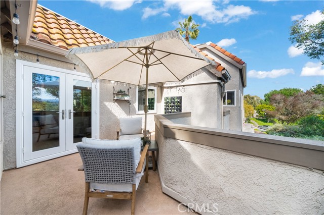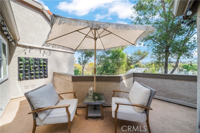 Welcome to this beautifully upgraded two-bedroom, two-bathroom upper corner condo in the highly desirable Villa Mira community of Laguna Niguel. Ideally situated for maximum privacy, this light-filled home offers vaulted ceilings and abundant natural light throughout. The remodeled kitchen showcases sleek European-style soft-close cabinetry, quartz countertops, and a full suite of stainless-steel appliances including a Bosch dishwasher, gas stove with stainless hood vent, microwave, and refrigerator — perfect for both everyday living and entertaining. Additional upgrades include newer dual-pane windows and sliding patio doors, as well as a newer A/C system for year-round comfort. Both bathrooms have been tastefully remodeled with modern finishes. Step outside to a spacious private patio where you can relax and enjoy serene city lights and mountain views — the perfect spot for morning coffee or evening unwinding. Enjoy year-round swimming in the community pool. Conveniently located near the 5 and 73 freeways, award-winning schools, Saddleback College and just a short drive to Southern California’s beautiful beaches.