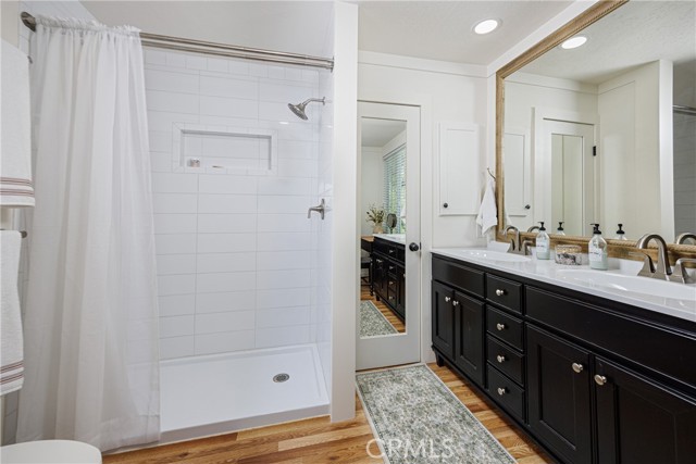 Outdoors, a stunning deck invites morning coffee or sunset unwinding against a beautiful backdrop. Upgraded landscaping, an exterior sprinkler system, outdoor motion lights, generous storage sheds, and new skirting. Moments from Los Rios, River Street Marketplace, golf, dining, and Dana Point Harbor, this is gracious living in an exceptional setting.