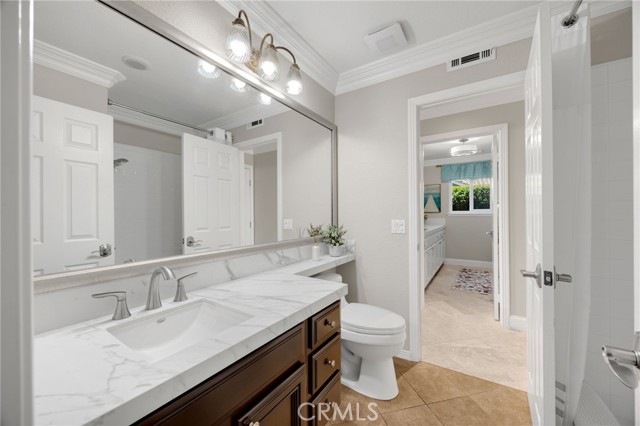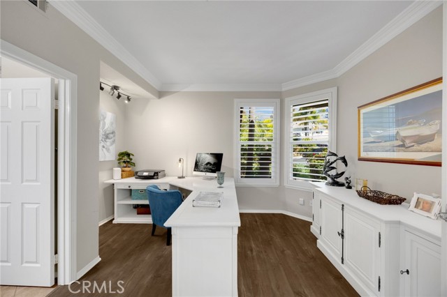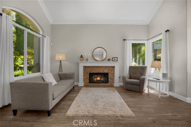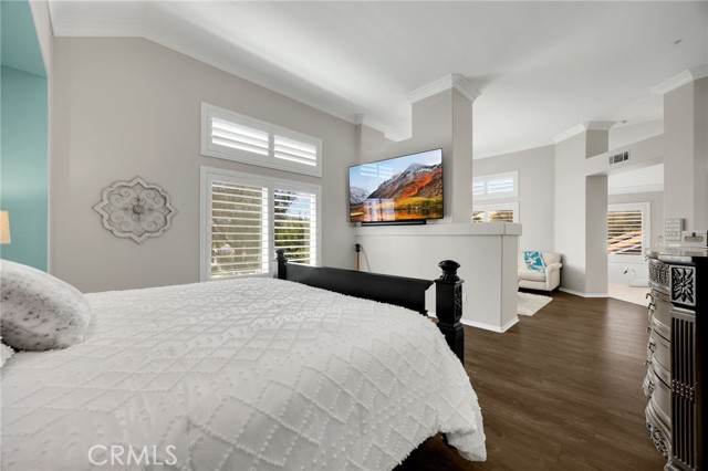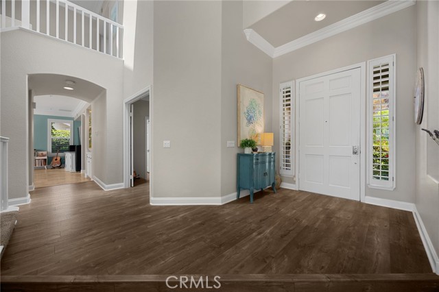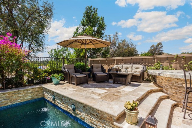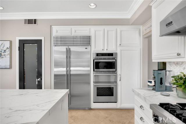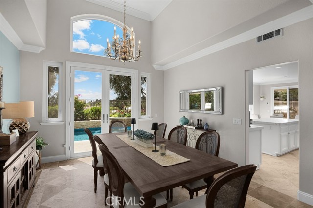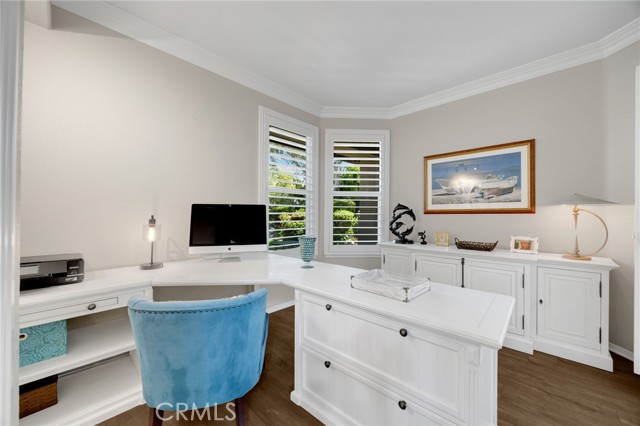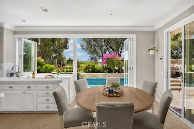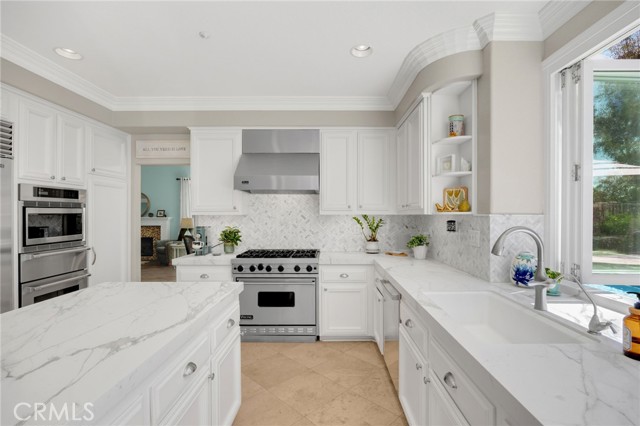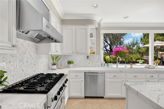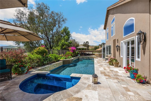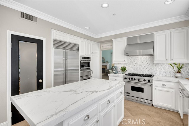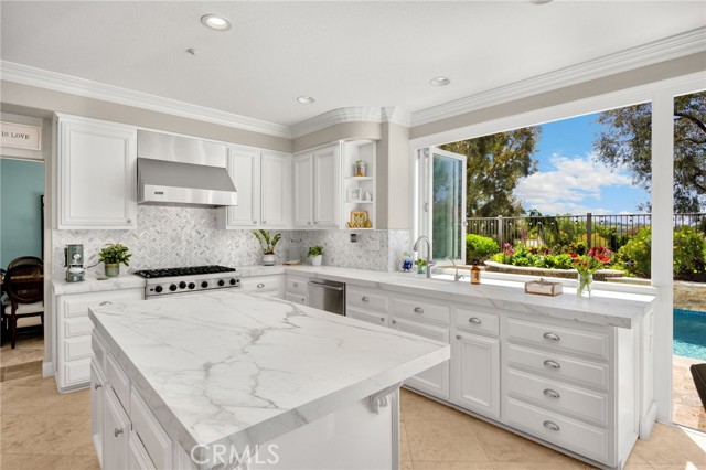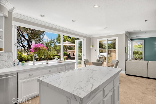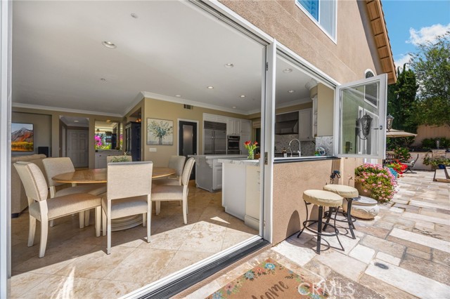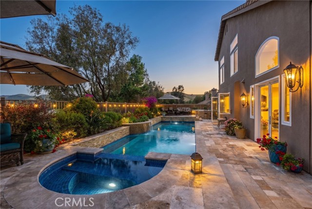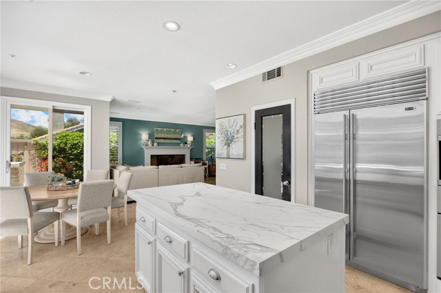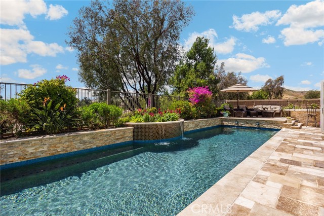 A rare find at the private end of a cul-de-sac, this beautifully upgraded 4-bedroom+office, 3 bath, 3317 sq ft coastal residence captures the essence of elevated San Clemente living. A very open, light-filled floor plan is enhanced by luxury vinyl flooring, custom shutters, vinyl windows, designer selected paint, crown moulding, and a fully prepaid solar lease-combining style, comfort, and efficiency. The entry opens to soaring vaulted ceilings and an elegant, updated fireplace in the living room, where natural light pours through large windows and flows into the dining room. French doors frame the resort backyard and sweeping views, bringing in ocean breezes and a bright, airy coastal ambience. The family room continues the open concept with travertine floors, a second updated fireplace, and a seamless connection to the kitchen. The chef’s kitchen is a true coastal showpiece with porcelain countertops on all surfaces, herringbone marble backsplash. Viking professional range, Thermador convection oven+warming drawer, Sub-zero refrigerator, Bosch dishwasher, RO water system under the kitchen sink, and a walk-in pantry. A dramatic bi-fold window, and bi-fold doors open the entire kitchen and breakfast area to the pool, panoramic views. A downstairs office/optional bedroom, full upgraded bath, and laundry room with sink. The primary suite offers vinyl flooring, crown moulding, custom shutters, walk-in closet, and a zen retreat area with fireplace. The spa-inspired bath features a stand-alone soaking tub, quartz counters, dual sinks. Secondary bedrooms feature vinyl flooring, mirrored doors, shutters. Step outside to your private resort backyard, where sweeping views and total privacy create a serene coastal escape. Enjoy a Revco solar-heated, salt-water PebbleTec lap pool with spa and waterfalls, enhanced by night lighting, an outdoor fireplace, a BBQ grill with generous seating, an elevated view lounge, and an outdoor dining terrace surrounded by lush landscaping. The 3-car garage is fully finished with epoxy flooring, built-in cabinets, and a Wen clean air system, offering a pristine space. Minutes from beaches, coastal trails, boutique shopping, dining, and top-rated schools, this home delivers the bright, open, private coastal lifestyle that defines San Clemente. This property is Stunning!